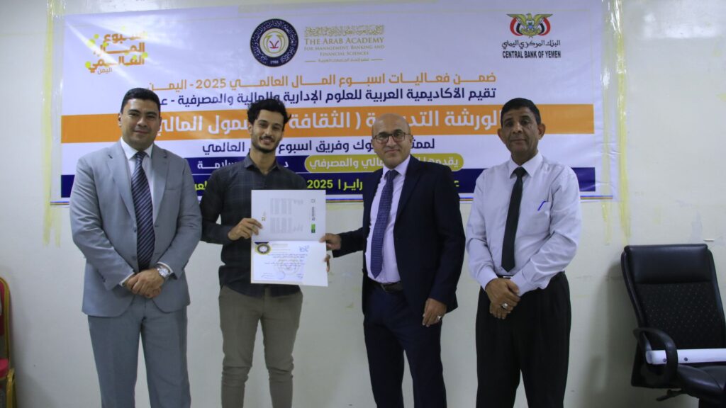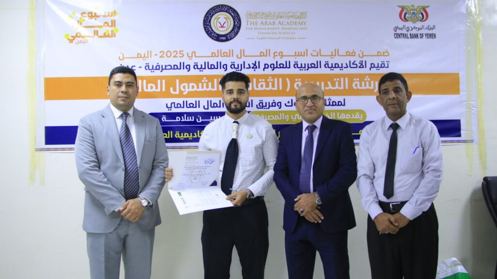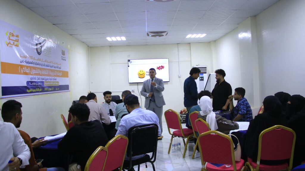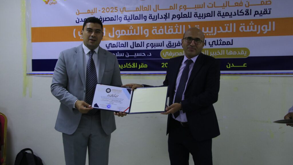 ضمن فعاليات أسبوع المال العالمي، نظّمت الأكاديمية العربية للعلوم الإدارية والمالية والمصرفية ورشة تدريبية بعنوان “الشمول المالي والثقافة المالية”، قدّمها الخبير المالي والمصرفي الدكتور حسين سلامة من جمهورية مصر العربية وذلك يوم الخميس الموافق 27 فبراير 2025م في مبنى الأكاديميةالعربيةفي عدن.