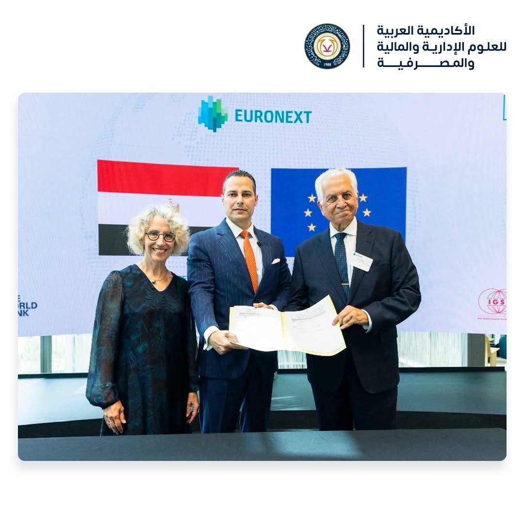 في العاصمة الفرنسية باريس وفي مقر البورصة الاوروبية Euronext داخل مقر بورصة باريس وفي حضور وفود من خمسة عشر دولة تم توقيع اتفاقية تعاون بين الاكاديمية العربية للعلوم الادارية والمالية والمصرفية ويمثلها د.مصطفي هديب رئيس الاكاديمية