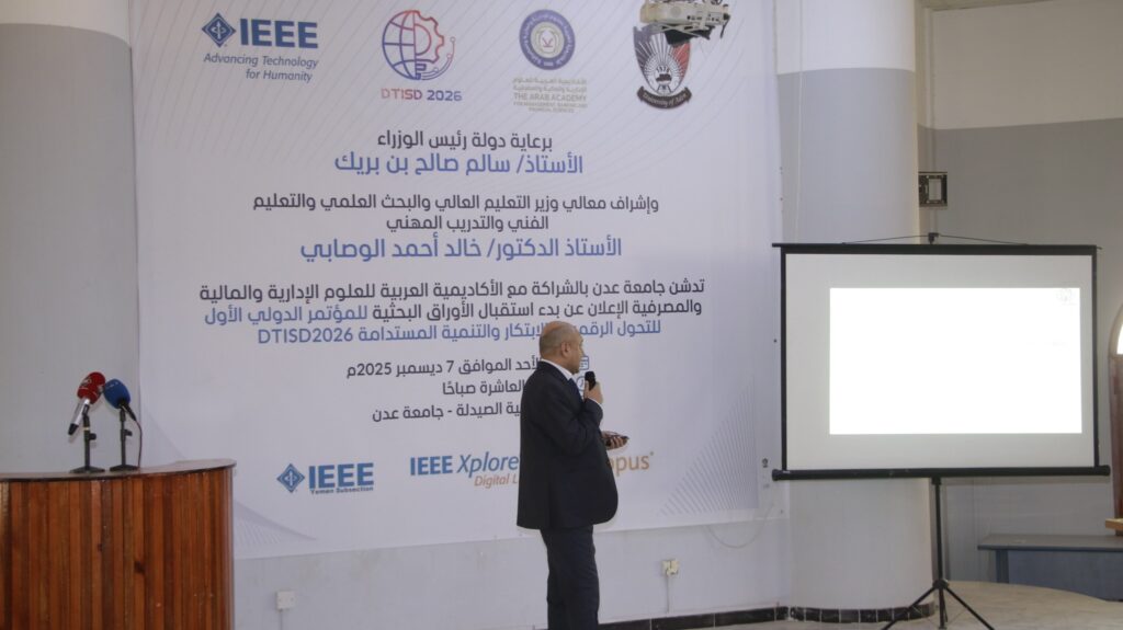 جامعة عدن والأكاديمية العربية تدشنان بدء استقبال الأوراق البحثية للمؤتمر الدولي الأول للتحول الرقمي والابتكار والتنمية المستدامة DTISD2026